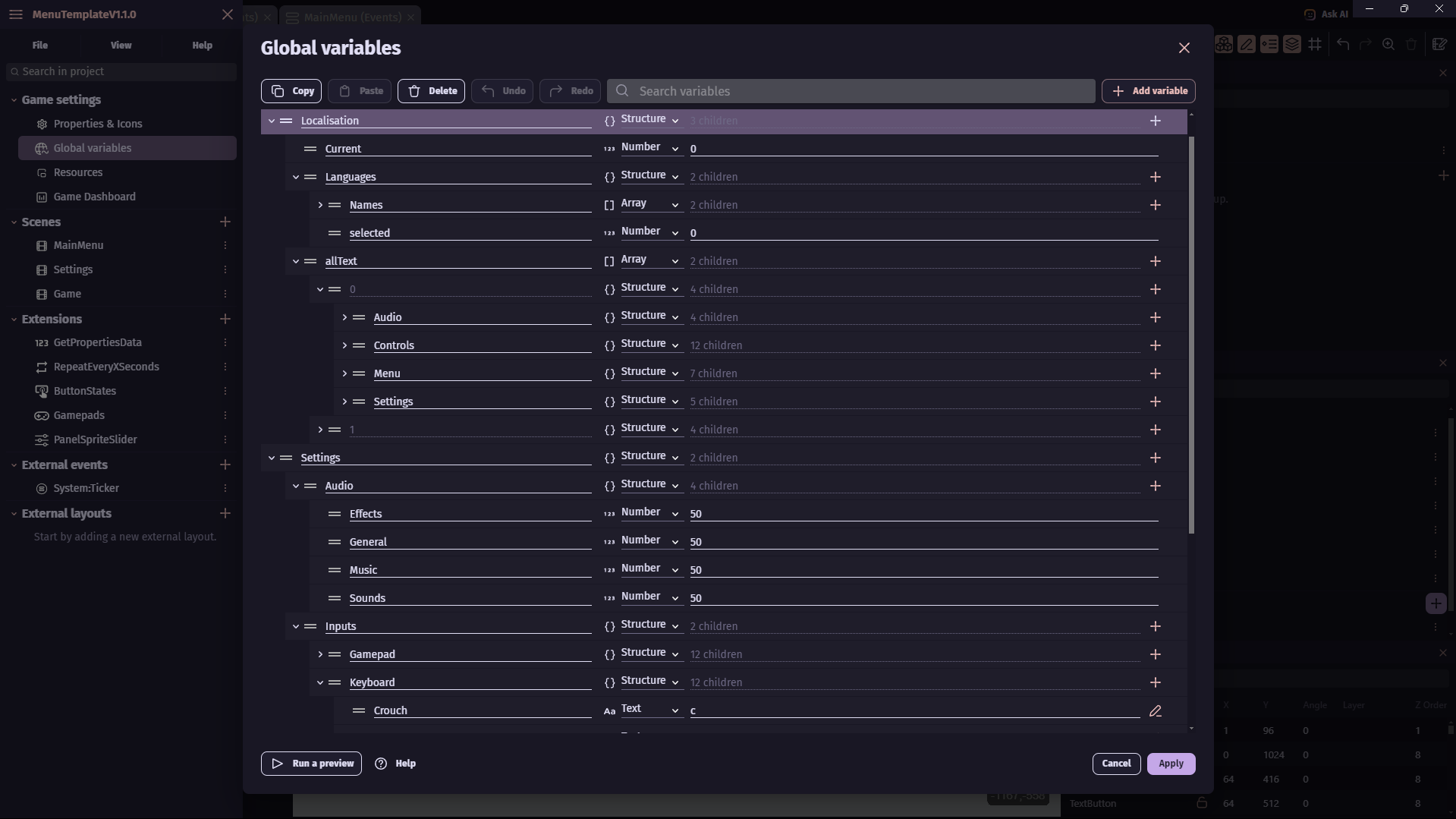 GDevelop Custom Controls & Localisation Template