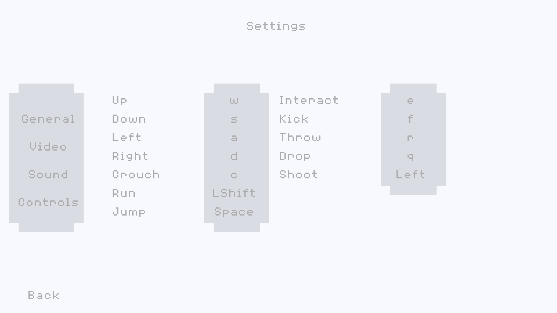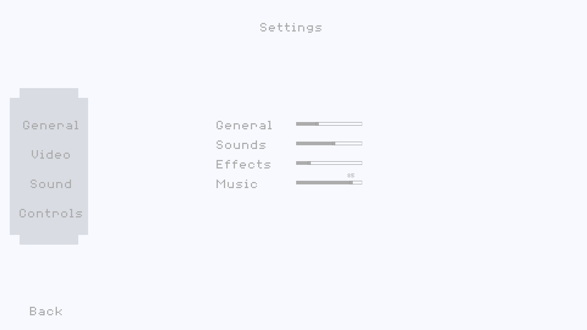 - Audio settings (music, sfx, master volume)
